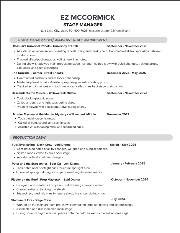 Ez McCormick Stage Management Portfolio